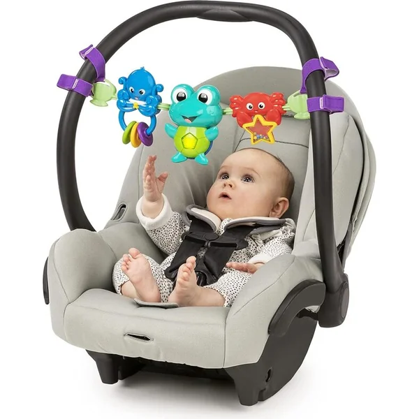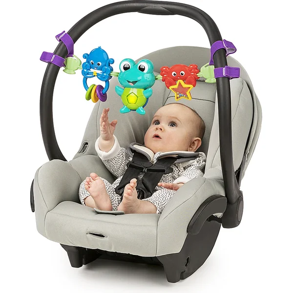 4 façons de jouer pour l’enfant – sur le ventre, allongé, assis, en porte-bébé - L’arche à jouets double usage se fixe au tapis de jeu et à la nacelle de la poussette