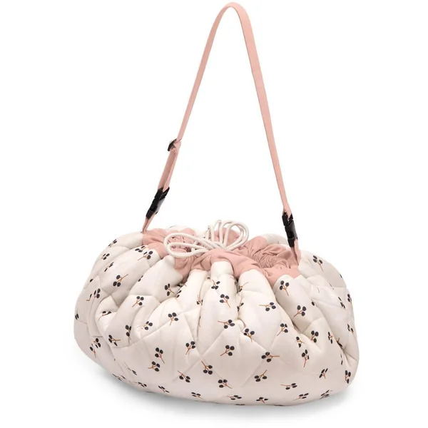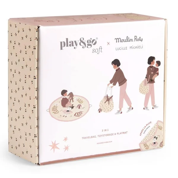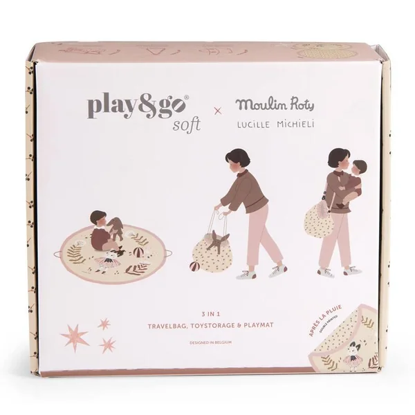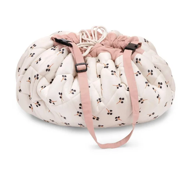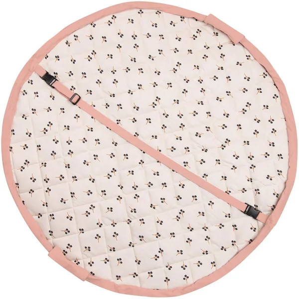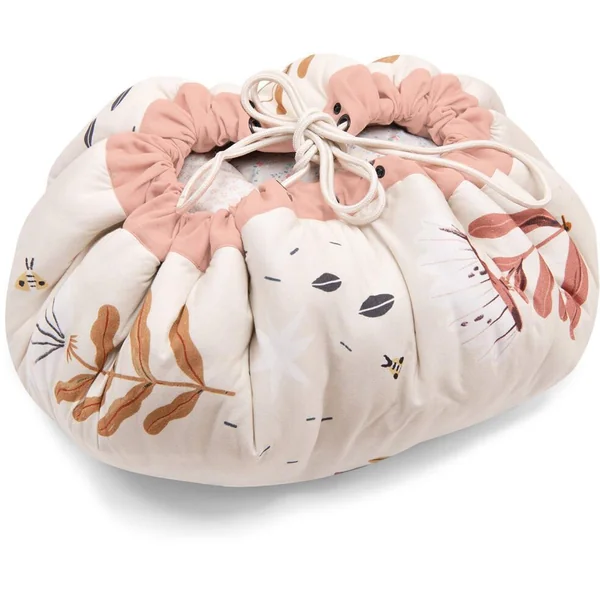 Pratique ! Ce tapis de jeu molletonné en toile 100% coton, délicatement illustré par Lucille Michieli se transforme en sac de rangement à emmener partout avec soi. Il suffit de resserrer ses deux cordons puis de le transporter grâce à sa lanière ajustable.