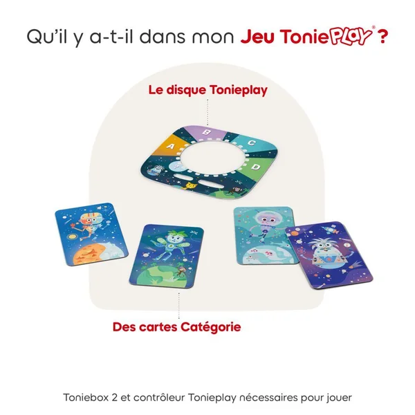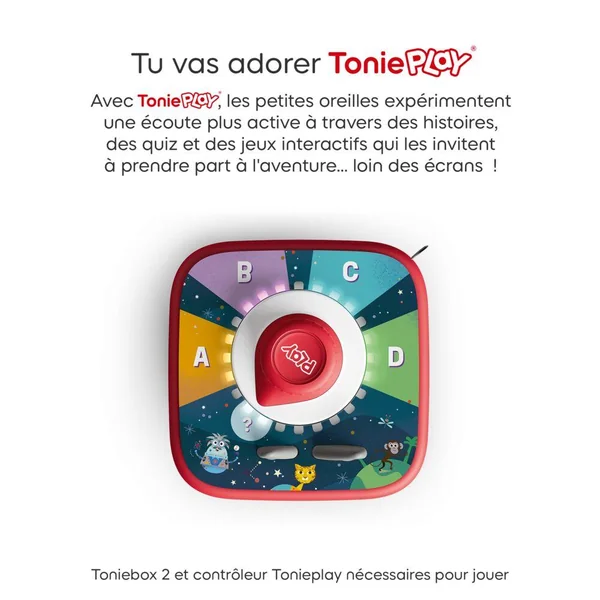 Pour pouvoir jouer à ce jeu, vous devez posséder une Toniebox 2 ainsi qu’un Contrôleur Tonieplay (qui sont non inclus