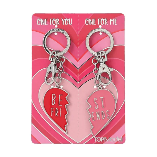 Le set tendance de porte-clés de la marque Top Model se compose de deux pièces qui s’emboîtent. Les deux moitiés sont ornées de l’inscription divisée « Best Friends ».