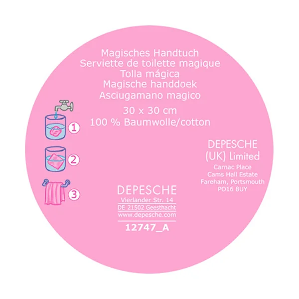 Plongez la serviette magique dans l’eau et regardez-la se déployer dans toute sa taille.