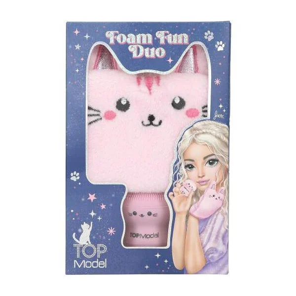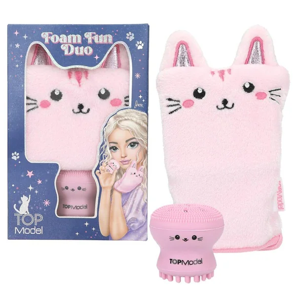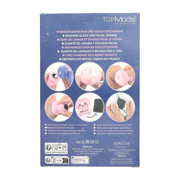 Duo tout propre : ce kit rose de TOPModel contient un gant de toilette au look chat et une adorable éponge pour le visage. L’éponge peut être remplie de lotion nettoyante que l’on peut ensuite faire mousser en appuyant doucement. Matière du gant : 100 % polyester ; Matière de l’éponge pour visage : silicone