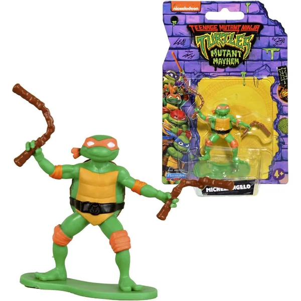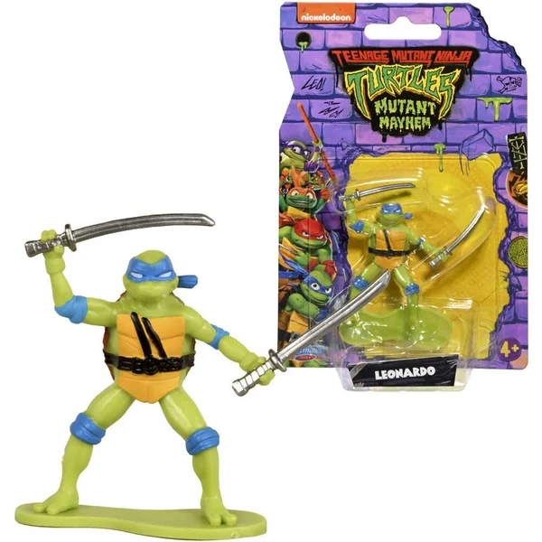 1 personnage de 5 cm Tortues Ninja avec une pose prête pour l’action et son arme emblématique à la main !