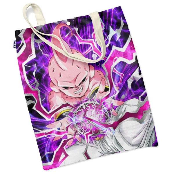 Ce tote bag met à l’honneur Kid Buu, l’un des antagonistes les plus mémorables de l’univers Dragon Ball Z. L’illustration vibrante saisit son regard intense et l’aura de chaos qui l’entoure. Les motifs d’éclairs violets ne sont pas juste décoratifs ; ils symbolisent sa puissance brute et imprévisible. C’est une représentation fidèle qui ravira les connaisseurs et attirera l’attention par son dynamisme.
