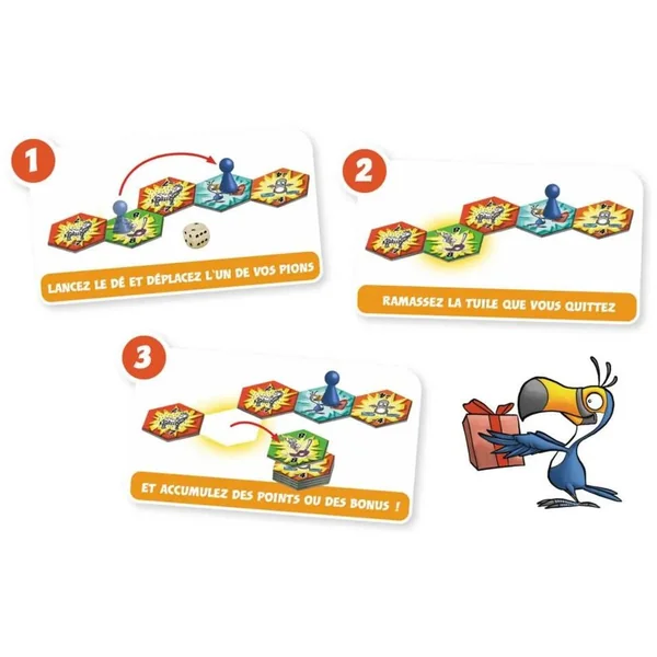 Dans Toucan do it, soyez celui qui aura récupéré le plus de points à la fin de la partie !