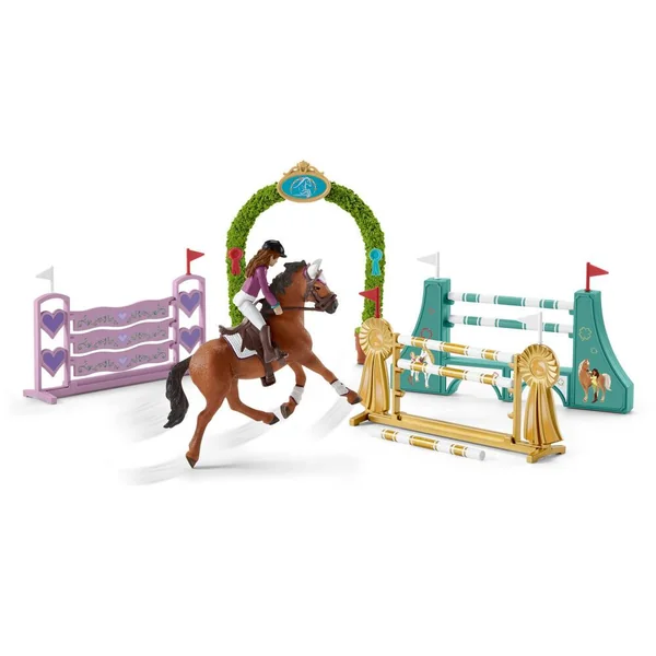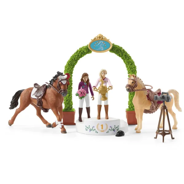 Sofia et Lisa franchissent les nombreux obstacles avec bravoure et reçoivent une pluie d’applaudissements sur le podium. Comprend 2 figurines articulées (avec cheveux, corps et jambes interchangeables), 3 animaux et plus de 18 accessoires.