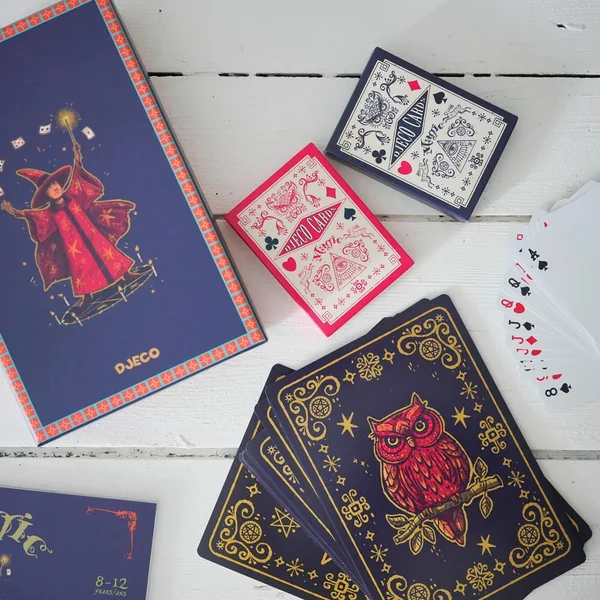 Découvrez le coffret de cartomagie de Djeco. Une boîte dédiée aux tours de cartes, une des catégories les plus appréciées de la magie moderne. Avec Cartum Magus, effectuez 20 tours de magie faciles à réaliser avec des jeux de cartes très spéciaux.