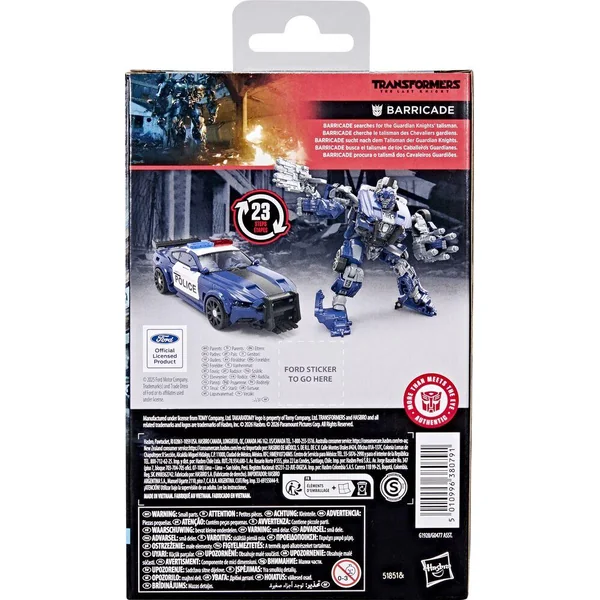 On peut facilement recréer l’action épique de Transformers : The Last Knight avec la figurine Studio Series Barricade ! La figurine de 11 cm se convertit du mode robot au mode voiture de police Ford Mustang sous licence en 23 étapes. Avec des détails inspirés du film, une excellente articulation et des accessoires amovibles qui se fixent sur la figurine dans les deux modes, cette figurine Transformers Barricade est un super ajout à toute collection. Il existe d’autres jouets de collection Transformers (vendus séparément, dans la limite des stocks) dont les personnages préférés de tous, Optimus Prime, Bumblebee, Megatron et bien d’autres, pour créer une collection de héros et de méchants plus forts que les apparences. TRANSFORMERS et HASBRO et toutes les marques et logos associés sont des marques de commerce de Hasbro, Inc. ©Ford Motor Company. Les marques de commerce Ford et leur présentation sont utilisées avec autorisation.