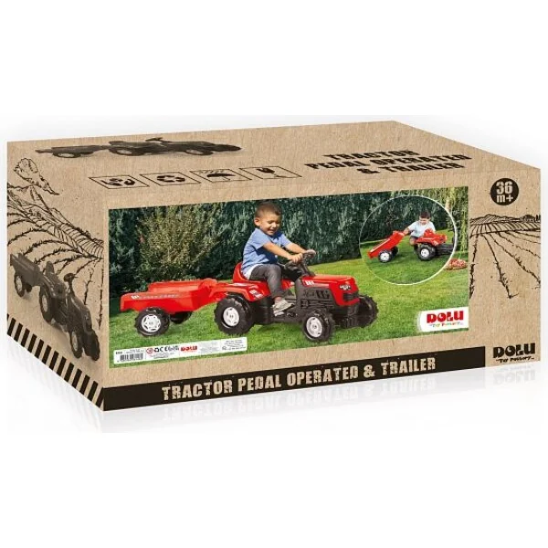 Tracteur à pédales Dolu Ranchero avec remorque, rouge