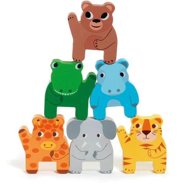 Un grand train coloré, en bois, avec des passagers animaux de la jungle. L’enfant s’amuse à placer les 11 animaux sur les 6 wagons et les promène à l’aide du lacet. Lorsqu’ils descendent du train, les animaux tiennent debout et l’enfant peut s’amuser à jouer avec autant qu’il le souhaite !