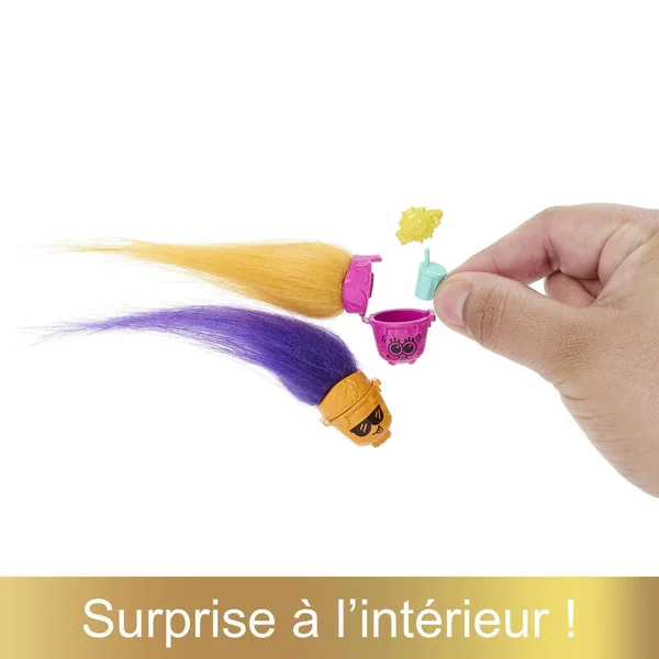 La figurine de 6,35cm cache bien des surprises ! 1 habillage supplémentaire, 1 accessoire et 2 capsules éjectables à dissimuler dans la coiffure.