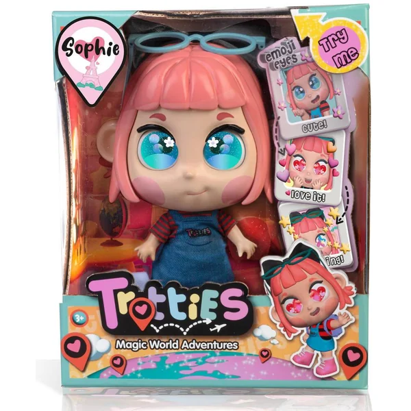 Sophie aime Paris par-dessus tout! Elle adore les belles choses et dessiner est sa passion. Son pouvoir magique? Tout ce qu’elle dessine peut prendre vie. -Elle a un look actuel (combinaison, t-shirt rayé, bottes, lunettes, ruban) -Et un joli sac à main violet -Elle a des Emoji dans les yeux – Appuie sur le bouton pour faire changer l’humeur de Sophie (J’adore, J’aime ET Incroyable) -Passeport avec QR code pour débloquer un mini jeu exclusive sur l’App Stickers -Hauteur de la poupée : 25 cm –