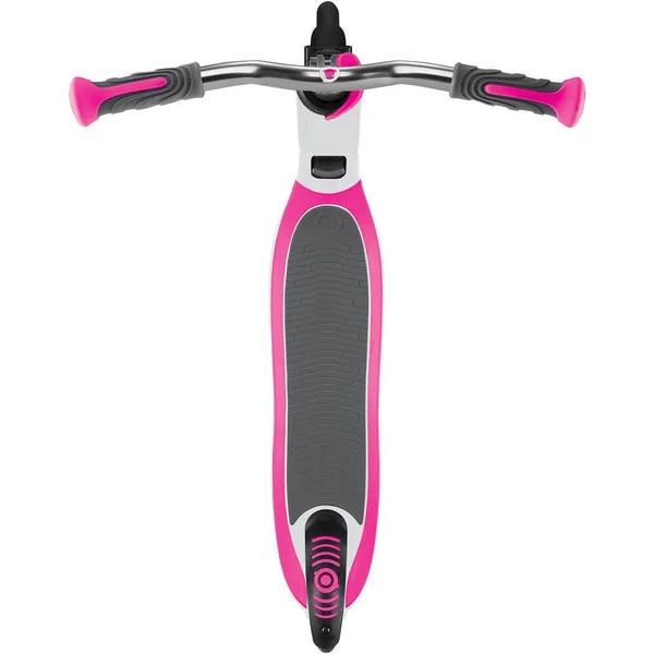Trottinette Globber Flow 125 pliable rose néon. Guidon T-bar incurvé ajustable sur 4 hauteurs (de 81 à 96 cm), avec collier de serrage facile à utiliser et poignées en matériau TPR, pour un changement de position facile et une prise en main confortable. Structure en aluminium et plateau composite bi-injection, avec grip souple en mousse EVA offrant un maximum de solidité et de confort pour une utilisation intensive. Roues 121 mm en PU coulé montées sur des roulements ABEC 5 pour une utilisation fluide et prolongée. Système de pliage intégré au design, utilisation facile et sécurisée. Facilement transportable en mode trolley. Système de freinage roue arrière. A partir de 6 ans. Poids de l’utilisateur 100 kg maximum. Dimensions de la trottinette : L. 72 x l. 43.5 x h. 81-96 cm. Poids : 3.3 kg. Les Flow 125 Foldable disposent d’une conception spécifique aux trottinettes Globber 2 roues pour ados. Grâce à leur plateau triple-structure en aluminium et composite bi-injection, grip souple en mousse EVA, ces trottinettes supportent jusqu’à 100 kg tout en proposant une glisse et une conduite super confortable !