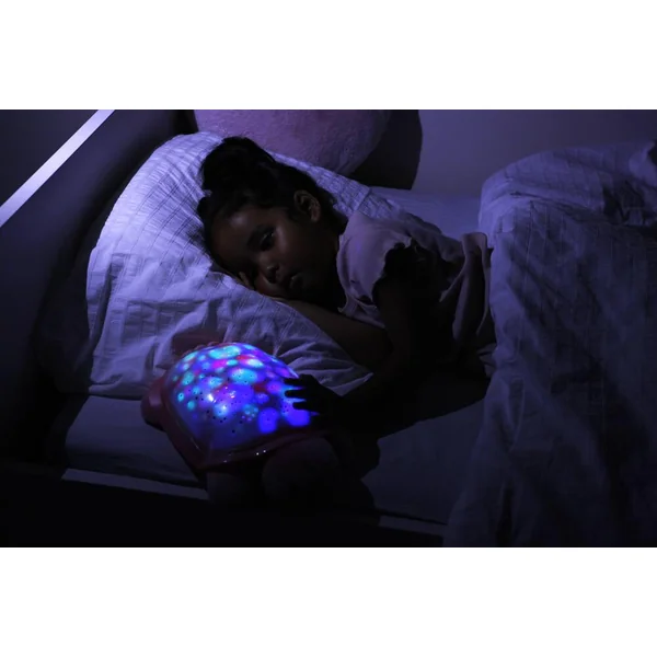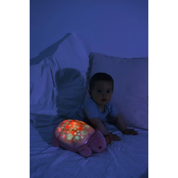Aussi mignonne que réconfortante, cette veilleuse Twilight Turtle projette sur le plafond de la chambre un ciel étoilé scintillant et joue deux mélodies apaisantes. C’est un jouet pendant la journée qui se transforme en jolie veilleuse la nuit venue pour la rendre beaucoup moins effrayante et plus amusante pour bébé. Choisissez parmi trois couleurs de lumière pour créer un environnement magique et tranquille qui aidera l’enfant à s’endormir paisiblement. Sa carapace a de jolis reflets. Plus en détails : Une solution pour la peur du noir chez bébé et l’enfant. Minuterie de 45 minutes qui assure l’obscurité complète pendant le sommeil profond de l’enfant, recommandé par les pédiatres. Projection en des étoiles scintillantes 3 couleurs apaisantes : bleu, vert et ambre. Option changement automatique des 3 couleurs. Carapace avec reflets moirés. 2 mélodies avec contrôle du volume sonore.