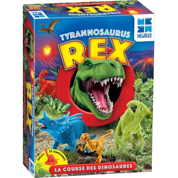 Chaque joueur possède 4 dinosaures et doit échapper au féroce T-Rex. Un jeu amusant et instructif pour découvrir 17 espèces de dinosaures. De 2 à 4 joueurs.