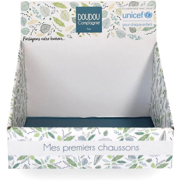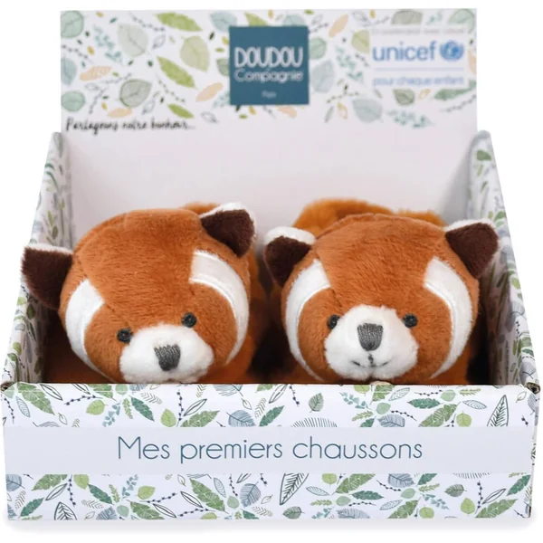 Grâce à cette collection, imaginée exclusivement par Doudou et Compagnie pour UNICEF, chaque produit vendu permet de récolter des fonds pour Unicef, pour ensemble continuer à faire avancer les droits de l’enfant. Cette nouvelle création, tendre et douce, nous rapproche ausssi de l’essentiel : la nature. Protéger les enfants du monde, c’est aussi protéger leur avenir en se sensibilisant à la préservation de la faune et de la flore. Ces chaussons PANDA ROUX garderons les petons bien au chaud et amuserons bébé. Ils sont présentés dans une jolie boîte au motif végétal raffiné. Lavable à 30°. Un cadeau idéal dès la naissance.Ce produit bénéficie de LA GARANTIE DOUDOU. Grâce à son numéro unique, Doudou perdu est vite retrouvé! Enregistrez votre Doudou et découvrez toutes les garanties sur le site doudouetcompagnie.com.