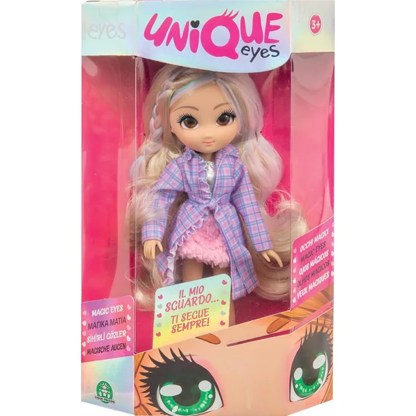 Amy, Sophia et Rebecca sont 3 amies inséparables qui aiment la mode, font du sport et ont de nombreux intérêts et passions. La particularité des poupées UNIQUE EYES, Elles te suivent toujours du regard avec leurs magnifiques grands yeux. Chacune possède une magnifique chevelure qui demandera toute l’attention des enfants. Poupée de 25 cm de haut avec des vêtements très mode.