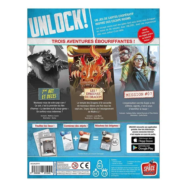 En plus de l’application dédiée à installer, la boîte d’Unlock ! Epic adventures contient :