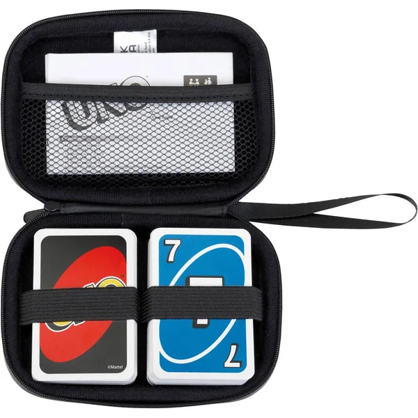 UNO Carry bagavec pochette intérieure en filet pour conserver les règles du jeu UNO, et deux élastiques intérieurs pour ranger les cartes UNO en deux piles.- Tissu imperméable- Facile à transporter, léger* Les cartes du jeu UNO ne sont pas incluses.
