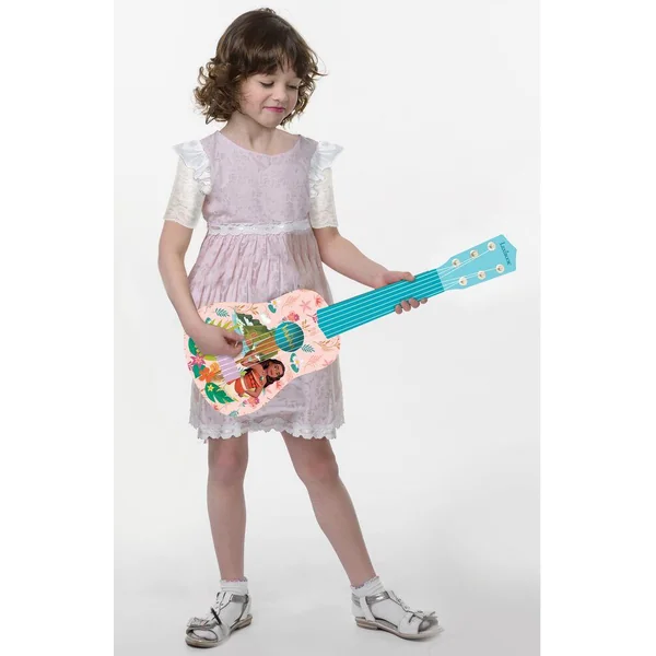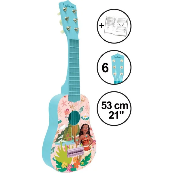 Prepare toi pour la scene voici la guitare vaiana parfaite pour tes premieres lecons de guitare avec un style ravissant taille environ 53cm de long 6 cordes en nylon plastique possibilite d accorder accordeur non inclus fonction bonus comprend un guide pour apprendre à jouer de la guitare.