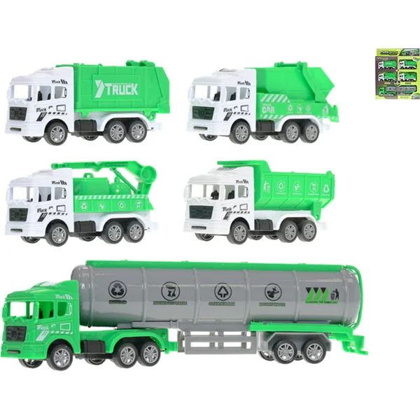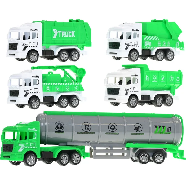 Les véhicules de service de nettoyage en marche arrière. L’emballage contient cinq véhicules différents.
