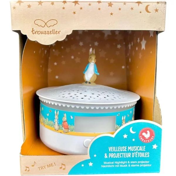 VEILLEUSE – PROJECTEUR D’ETOILES PIERRE LAPIN© 14 CM – MUSICAL –