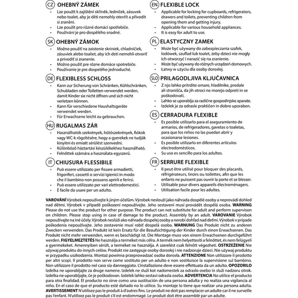 • Les verrous flexibles sont conçus pour sécuriser les armoires, tiroirs ou toilettes