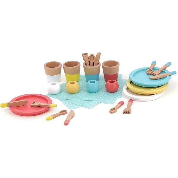 Il est temps d’inviter tous les amis à déjeuner ! Avec cet ensemble de vaisselle, votre enfant peut imaginer de beaux moments pleins de fantaisie et imiter les adultes.
