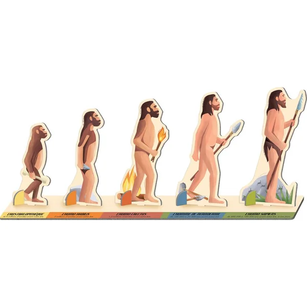 Avec Voyage, découvre, explore la Préhistoire, les enfants sont ramenés deux millions d’années en arrière, l’époque qui a vu apparaître les tout premiers hominidés. À travers ce jeu, les petits explorateurs découvrent les raisons qui ont conduit cette espèce à continuellement évoluer jusqu’à atteindre le stade d’homo sapiens. Ils pourront également y consulter chaque étape de cette intrigante évolution à l’aide d’un modèle 3D ultra pratique. Le livre explique aussi l’environnement dans lequel cette évolution s’est produite ainsi que les espèces ayant régné sur la Terre durant cette période. La leçon se conclut ensuite sur un puzzle destiné à faciliter l’assimilation.
